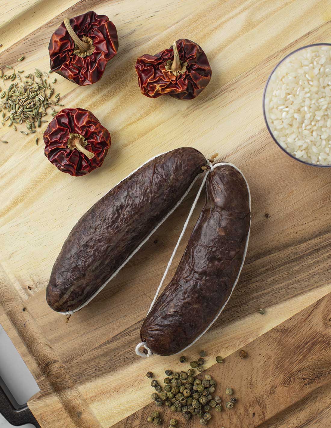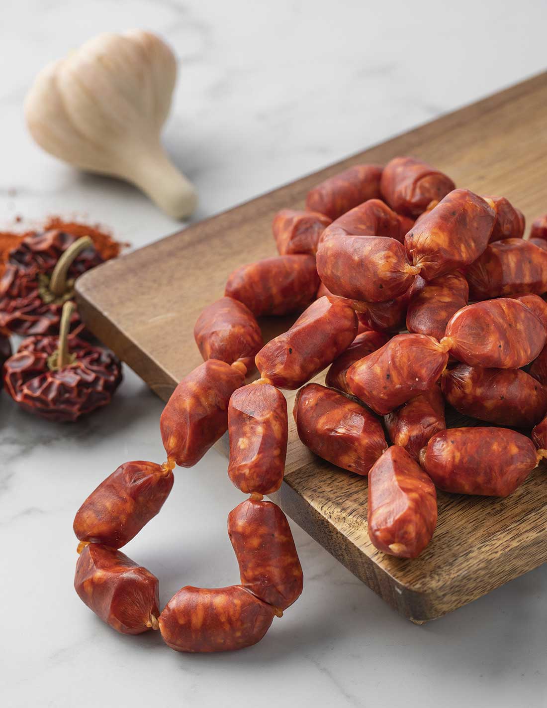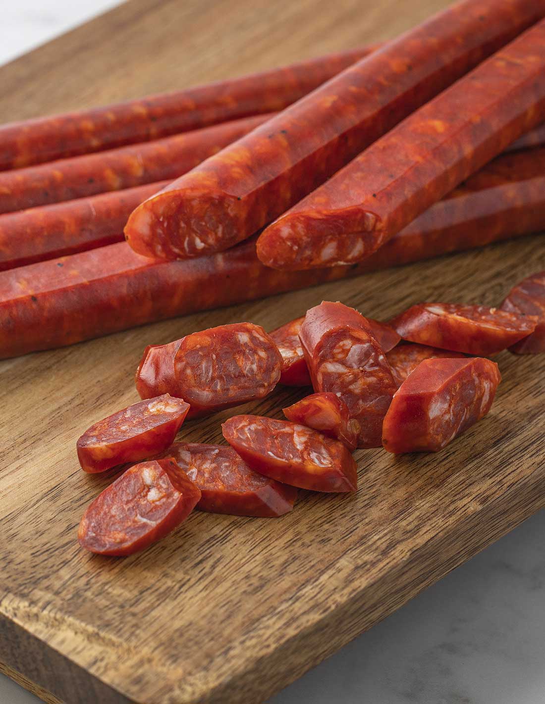 From the famous region of Rioja, Riojano is made with a good deal of Spanish pimentón and garlic. Naturally air-dried. Perfect for preparing a typical Spanish dish, “patatas a la riojana”.